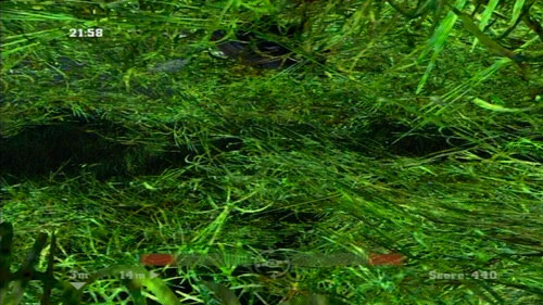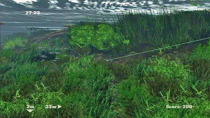 Die Grafik ist nett und abwechslungsreif gestaltet, und die animierten Fische sehen auch ganz passabel aus. Die Unterwasservegetation gibt dem Spiel einen schönen Look, wobei manchmal in dem vielen „Gestrüpp“, die Übersicht verloren geht. Zwischendurch sieht man irgendwie nur noch grün und nichts mehr von seinen Kontrollanzeigen. Ein Beispiel